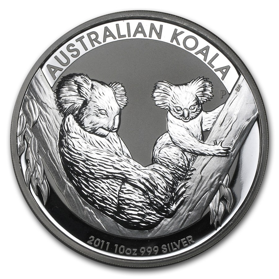 Изображение взрослой коалы с детенышем, сидящие на ветке дерева. На реверсе изображение Коалы меняется каждый год. Внизу — год выпуска, вес и чистота металла.