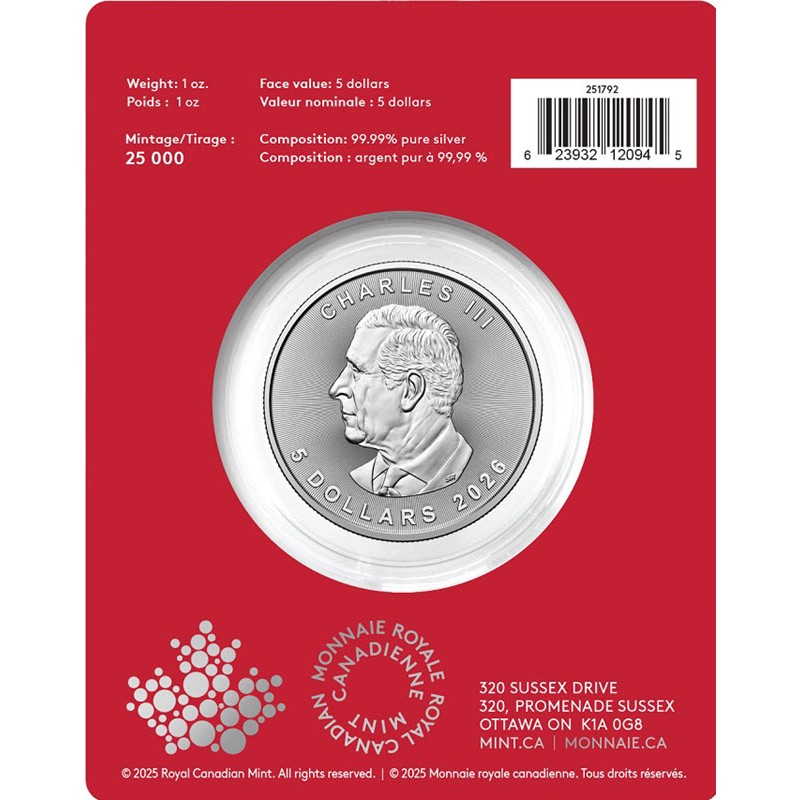 Эта чудесная серебряная монета - инвестиционный продукт премиум-класса в специальной упаковке – посвящена символу 2026 года Лошади. Каждая монета обработана с помощью MintShield™ — первого и единственного проверенного решения для уменьшения неприглядных белых или «молочных» пятен на серебряных инвестиционных монетах, разработанной Королевским монетным двором Канады. Поставляется в блистере с сертификатом подлинности. Тираж: 25000 штук.