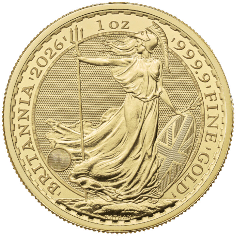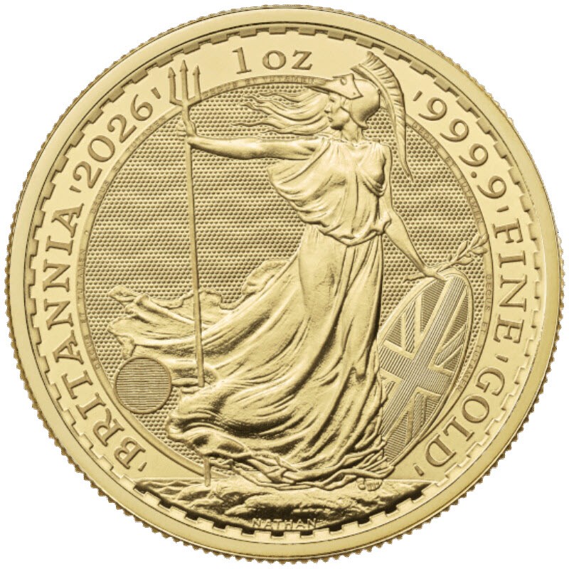 Золотая инвестиционная монета «Британия» 2026 года отчеканена по  дизайну Филипа Натана 1987 года.  Легендарная фигура Британии символизирует британскую силу и единство на монетах со времён Римской империи и держит в руке оливковую ветвь, символ мира.