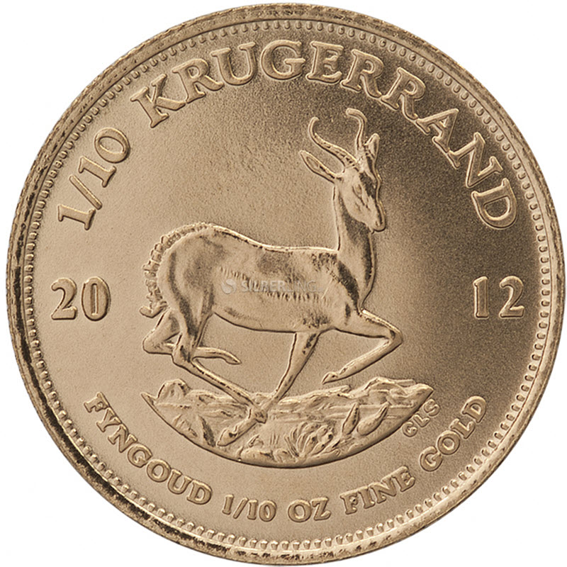 На реверсе монета украшена знаменитым государственным символом страны, антилопой. Над ней стоит надпись – «KRUGERRAND» (Крюгерранд), а под ней указана проба желтого металла – «FYNGOUD 1/10 OZ FINE GOLD» (1/10 унции чистого золота; слова «чистое золото» отчеканены на двух официальных южноафриканских языках – английском и африкаанс). Образ антилопы разделяет на две половины год выпуска монеты.