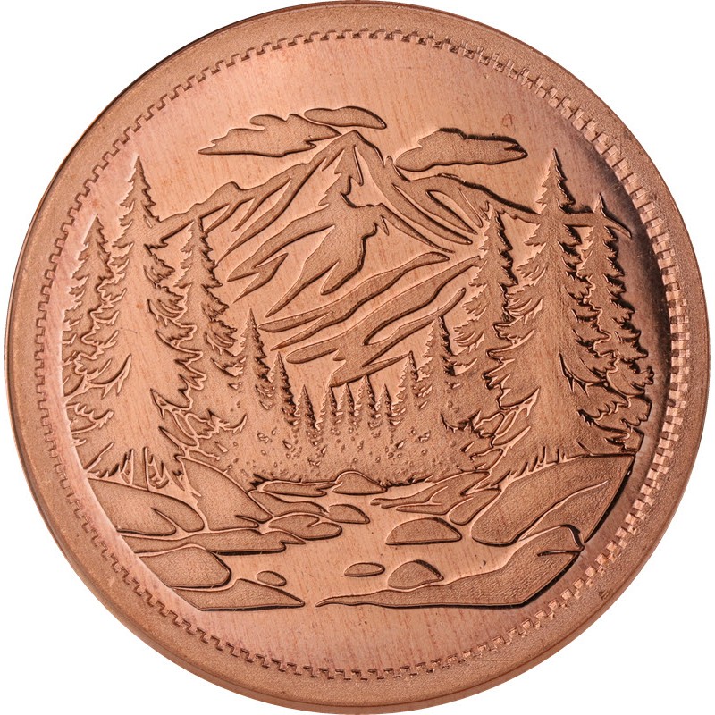 На аверсе изображена лесная речка в горах.