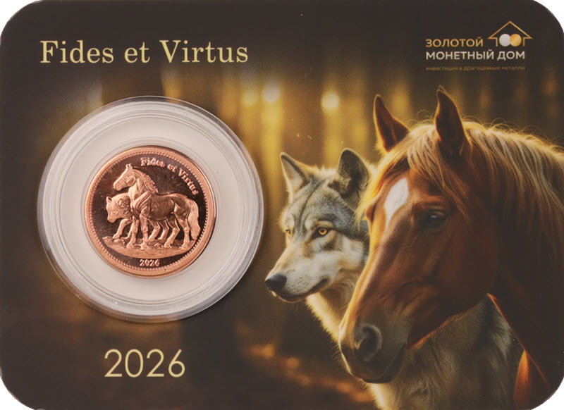 На реверсе изображены Волк и Лошадь, идущие вместе. Вверху надпись: Fides et Vertus (Верность и Доблесть). Внизу: 2026 (год чеканки).