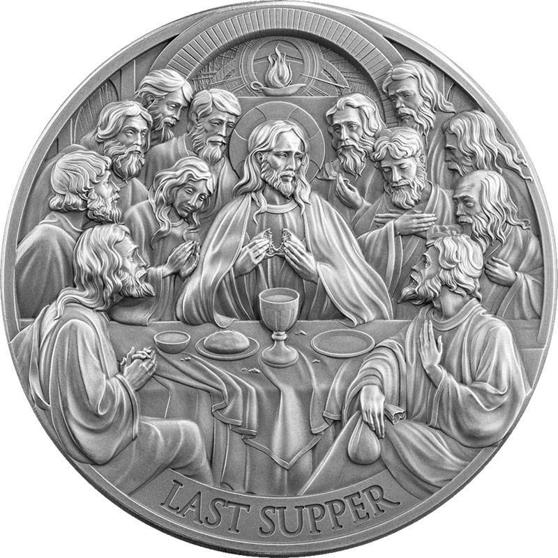 Серебряная монета Камеруна "Библейские истории. Тайная вечеря" 2025 г.в., 155.5 г чистого серебра (проба 999)