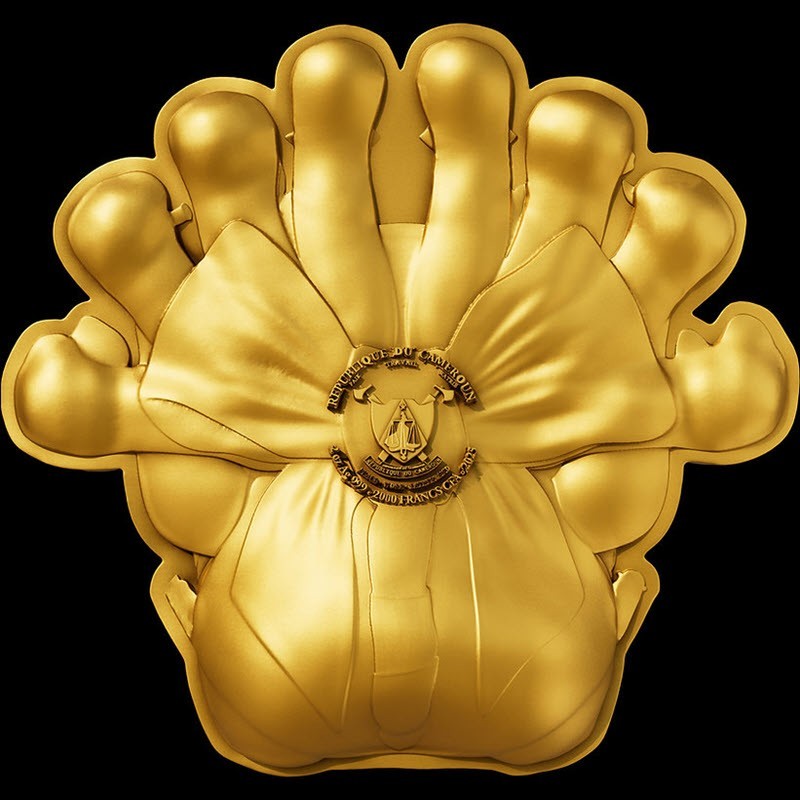Размер монеты 45 Х 42 мм. Поставляется в коробке с сертификатом подлинности.