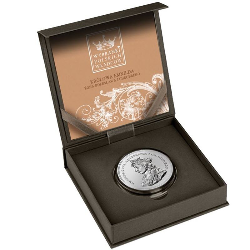 Серебряная монета Ниуэ из серии «Сокровища Станислава Августа» от Польского монетного двора посвящена Эмнильде, жене Болеслава I Храброго.