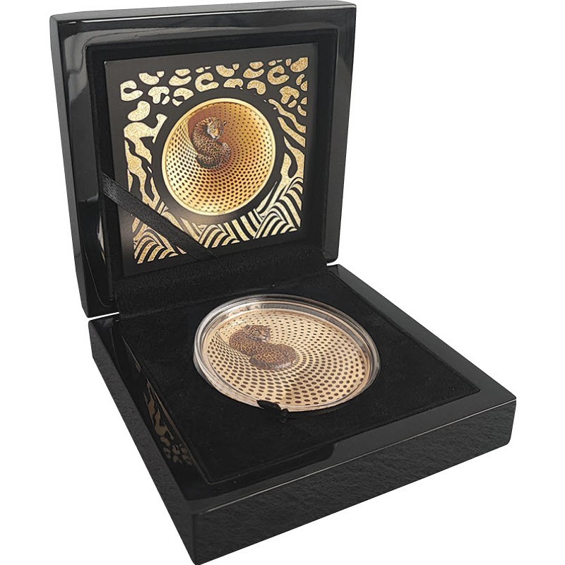 Эта чудесная серебряная монета весом в 5 унций - вторая из серии «Камуфляж природы» - посвящена леопарду. Монета качества пруф с золочением, с гипнотизирующей оптической иллюзией, технология Smartminting обеспечивает высокий рельеф. Поставляется в роскошном футляре с сертификатом подлинности. Тираж: 499 штук.