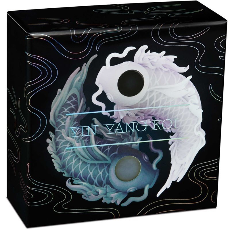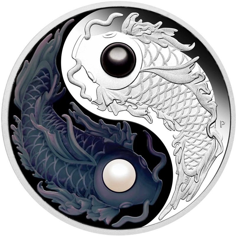 Эта удивительная серебряная монета весом в 5 унций имеет интригующий символ Инь Ян, образованный величественными рыбками кои, который олицетворяет двойственность и равновесие жизни. Настоящие пресноводные жемчужины были тщательно отобраны и искусно помещены в глаза рыбок. У неё качество пруф, поставляется в оригинальном футляре с внешней упаковкой и пронумерованным сертификатом подлинности. Тираж: 750 штук.