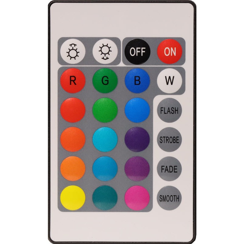 В комплект входит инфракрасный (ИК) пульт с 24 кнопками для управления RGBW светодиодными лентами. Он используется для включения/выключения света, выбора цветов, регулировки яркости и переключения режимов свечения. Питание светильника только от micro USB 5 вольт.