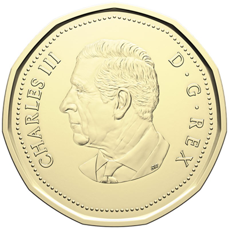 Монета номиналом 1 канадский доллар (также называется луни, англ. loonie, уменьшительное от англ. loon, "гагара") золотистого цвета введена в обращение в 1987 году. На реверсе монеты изображена черноклювая гагара, на аверсе изображена королева Елизавета II.