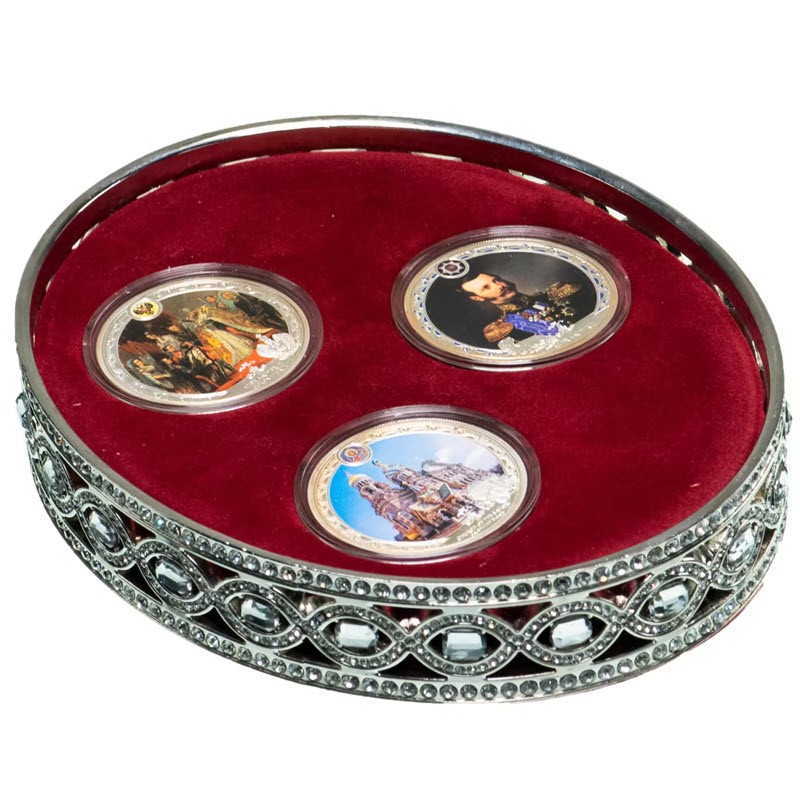 Набор из 3-х серебряных монет Фиджи "Александр II. Корона" 2012 г.в., 3*31.1 г чистого серебра (проба 999)