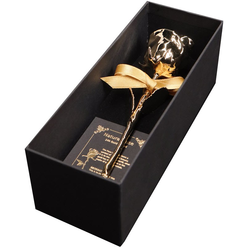 Уникальные и благородные: выращенные в естественных условиях розы, сохраненные на пике своей красоты, теперь сияют несравненным блеском, покрытые 24-каратным золотом. Розы длиной 14 см поставляются в элегантных подарочных коробках с сертификатом подлинности.