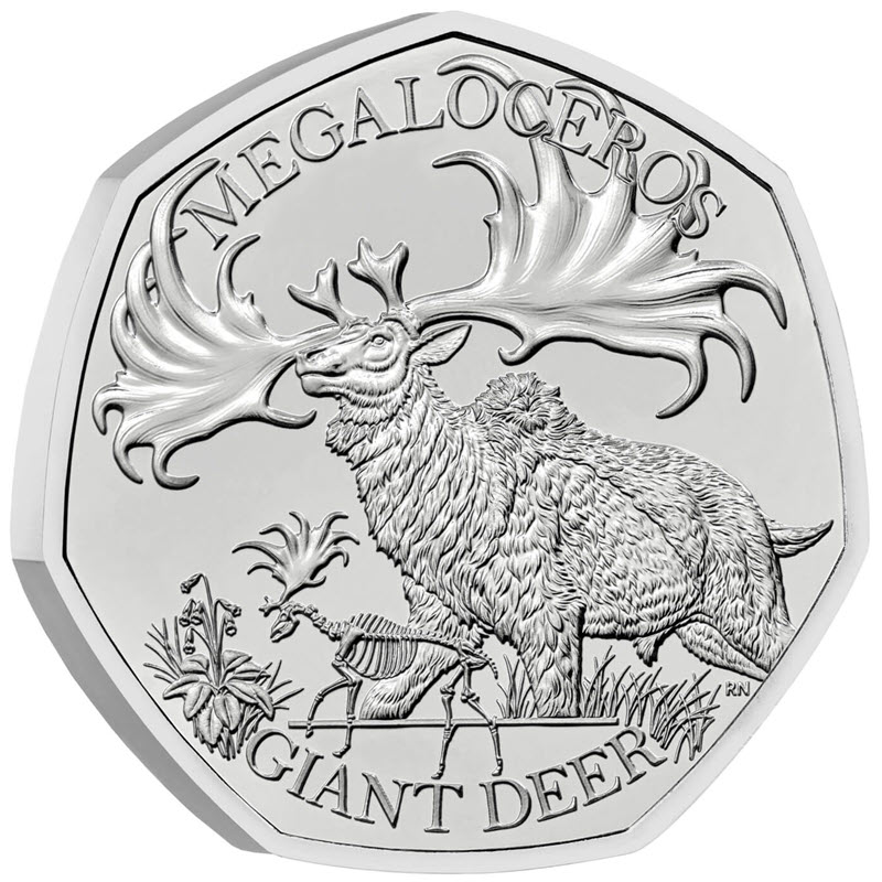 Медно-никелевая монета Великобритании "Гиганты ледникового периода. Гигантский олень" 2024 г.в., 8 г МД