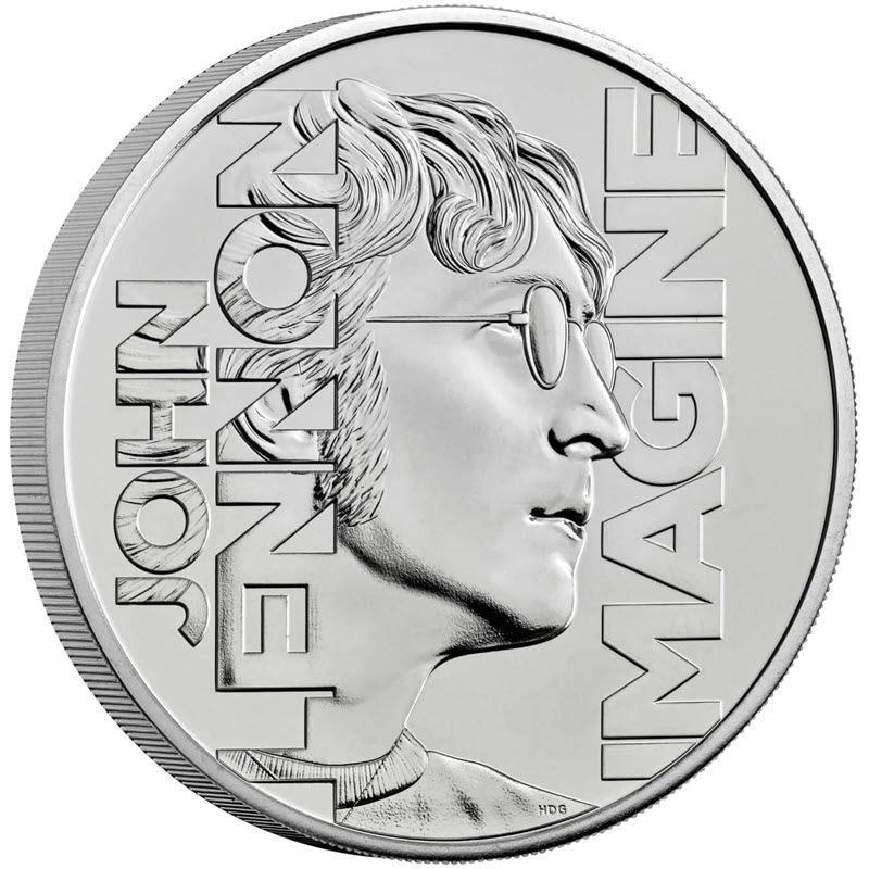 На реверсе изображен Джон Леннон на основе легендарной фотографии Боба Груэна (Bob Gruen). Надпись: JOHN LENNON IMAGINE. Внизу у канта инициалы дизайнера HDG (Henry Gray).