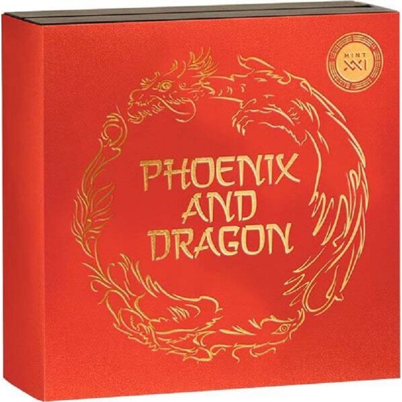 На реверсе монеты изображены феникс и дракон, представляющие баланс Инь-Ян. Дракон - существо сильное и суровое, а феникс - нежная и мирная птица. Таким образом, они символизируют концепцию взаимодополнения и баланса.