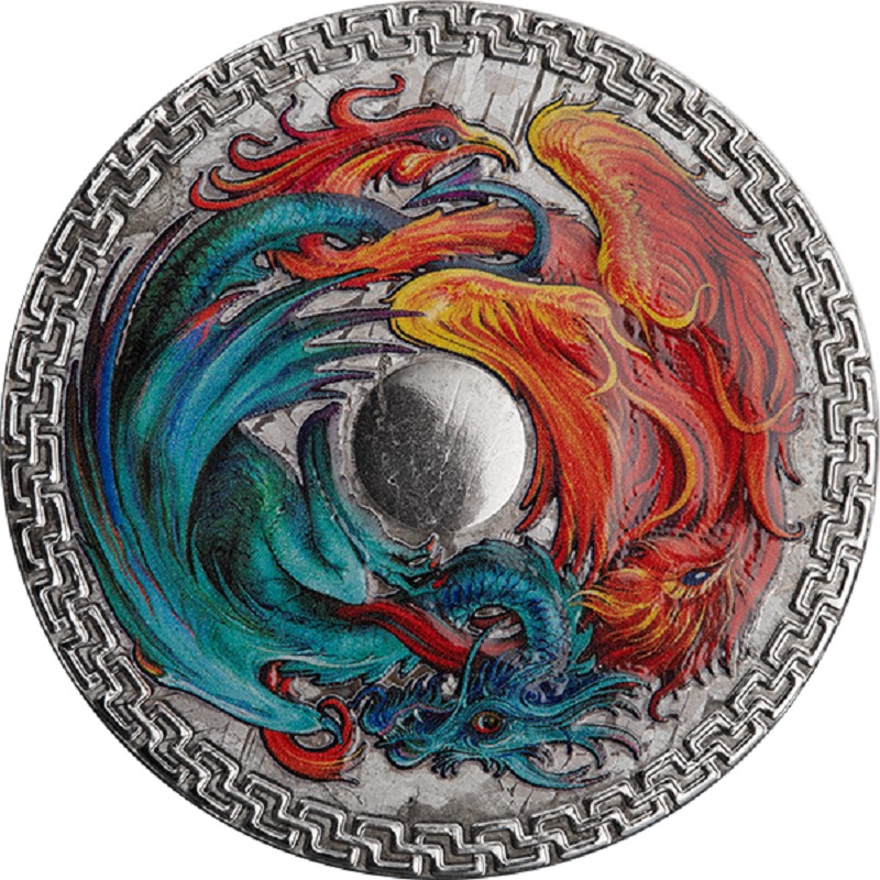 Монета из метеоритного железа Токелау "Феникс и Дракон" 2022 г.в., 31.1 г метеоритного железа (Проба 999)