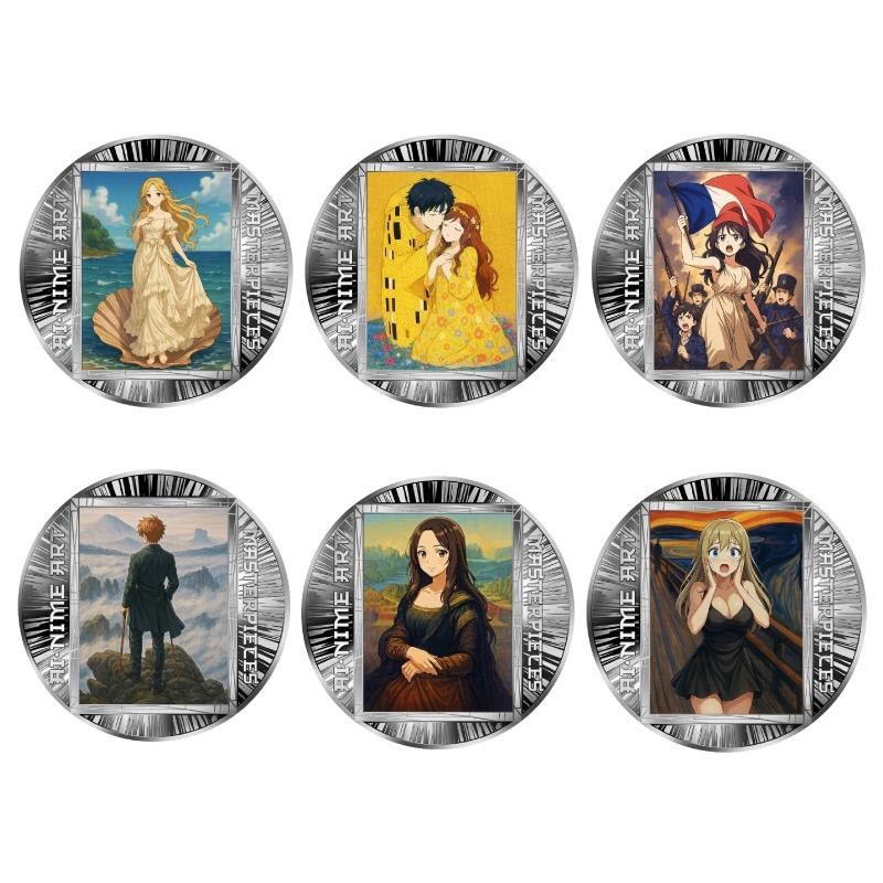 Этот чудесный набор из 6-ти монет представляет «Шедевры искусства» в стиле аниме. У них качество пруф и селективная окраска. Каждая монета поставляется в отдельном футляре с сертификатом подлинности. Тираж: 99 штук.