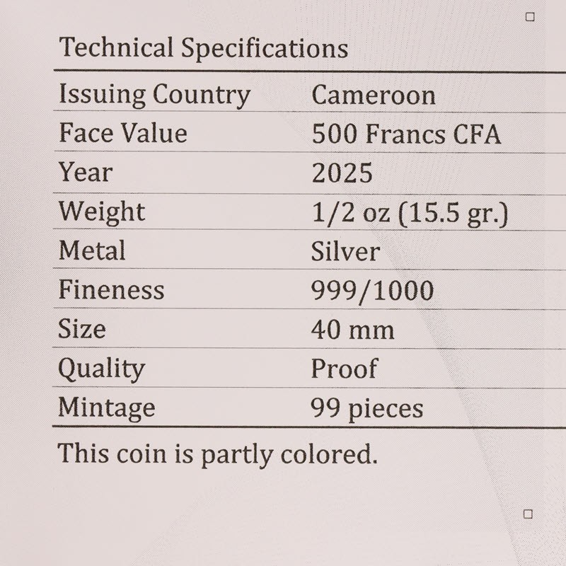 На аверсе всех монет слева изображен герб Камеруна. Справа изображена девушка в стиле аниме, рисующая на холсте, на фоне цветочного поля. Вдоль канта надпись: REPUBLIQUE DU CAMEROUN - 500 FRANCS CFA 1/2oz .999 fine silver 2025 (страна-эмитент, номинал, вес и проба серебра, год чеканки).