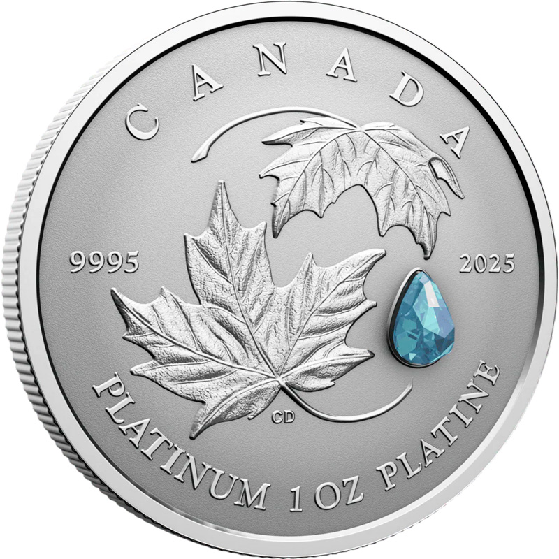В 2025 Монетный двор Канады году впервые представил платиновую монету «Кленовый лист навсегда» (Maple Leaf Forever), дополненную настоящим драгоценным камнем – аквамарином грушевидной формы с «розовой» огранкой (rose-cut). Вес драгоценного камня составляет 0.23 карата.