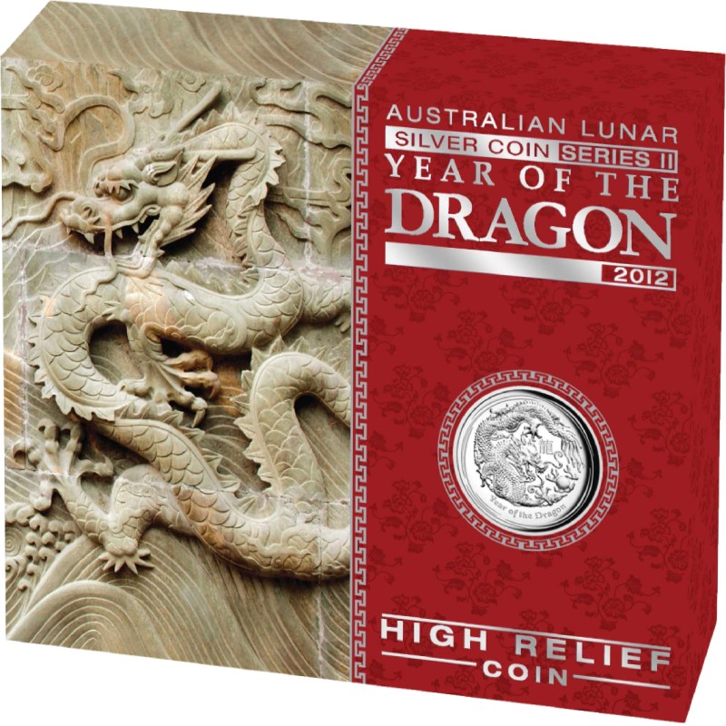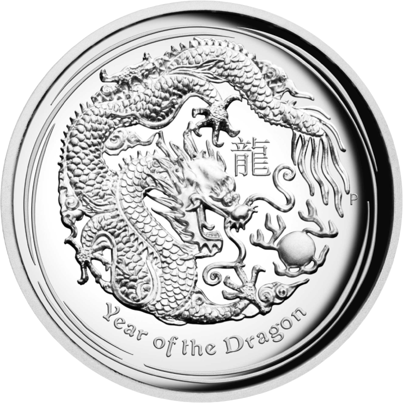 Серебряная монета Австралии "Год Дракона" 2012 г.в. (пруф), 31.1 г чистого серебра (проба 999)