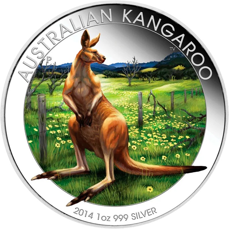 Серебряная монета Австралии "Кенгуру" 2014 г.в. (пруф с цветом), 31.1 г чистого серебра (проба 999)