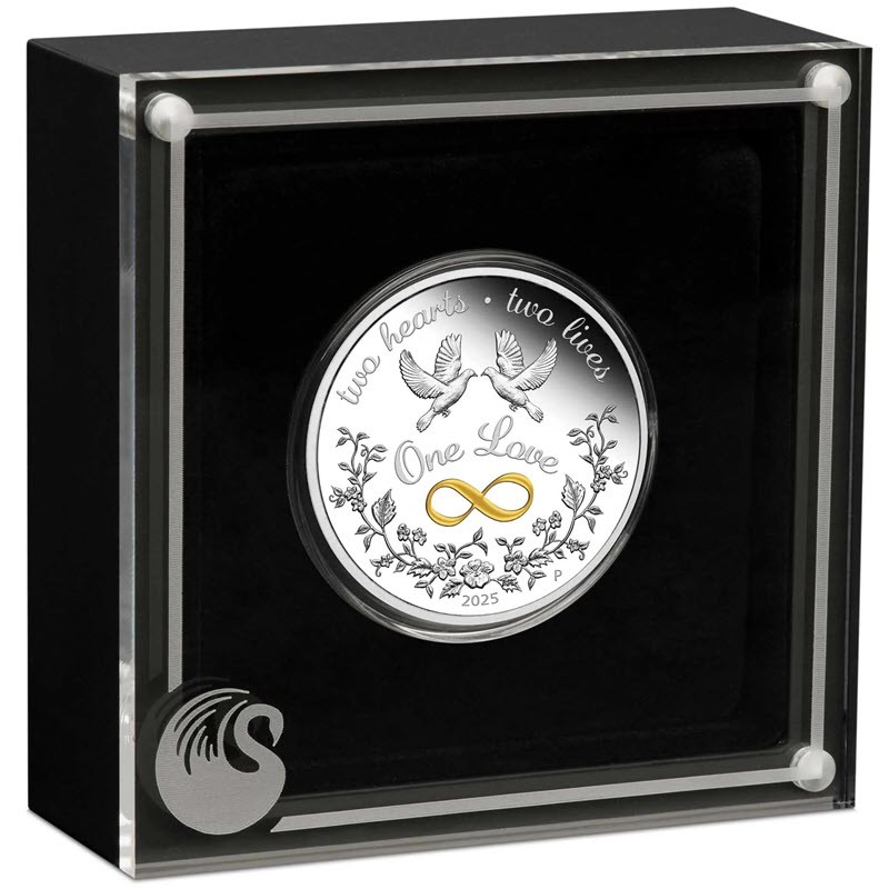 Серебряная монета Австралии "Одна любовь" 2025 г.в. (пруф), 31.1 г чистого серебра (проба 9999)