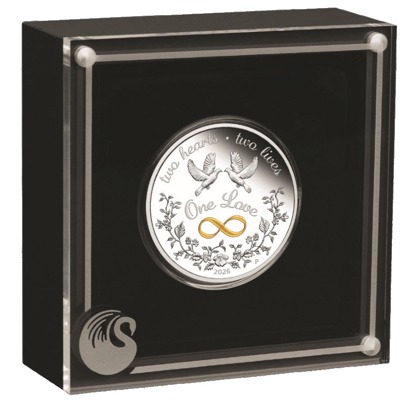 Серебряная монета Австралии "Одна любовь" 2026 г.в. (пруф), 31.1 г чистого серебра (проба 9999)