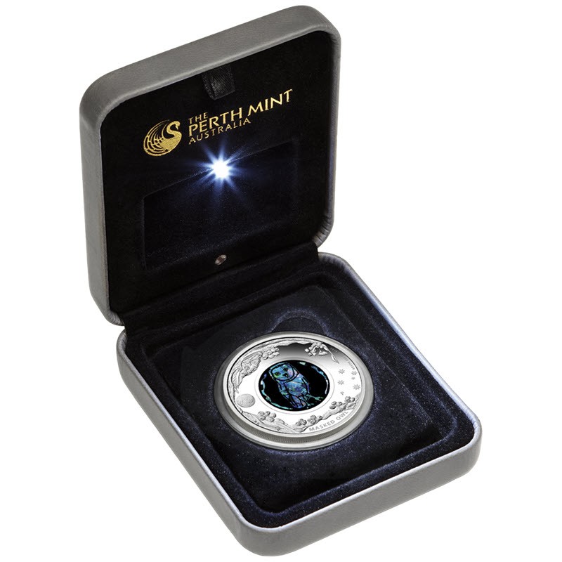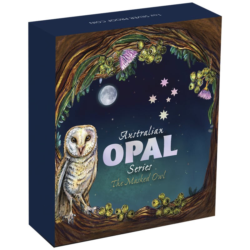 Эта чудесная серебряная монета – шестая из серии «Австралийские опалы». У нее качество пруф и вставка из австралийского опала. Поставляется в оригинальном футляре с подсветкой, которая загорается при открытии футляра, подчёркивая опаловый дизайн и символизируя лунный свет. В комплект входит сертификат подлинности. Тираж: 5363 штук.