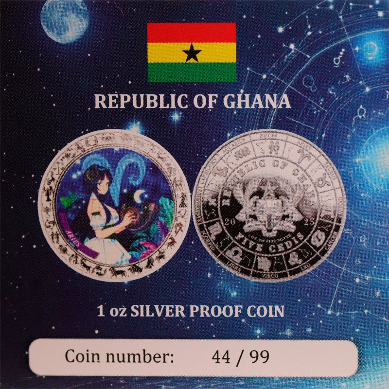Эта красивая серебряная монета из серии «Аниме Зодиак» посвящена первому по счёту астрологическому знаку зодиака - «Овен» (Aries). Считается, что к нему принадлежат рождённые с 21 марта по 20 апреля. Людей, родившихся под этим знаком зодиака, астрологи часто описывают как энергичных, импульсивных и смелых.