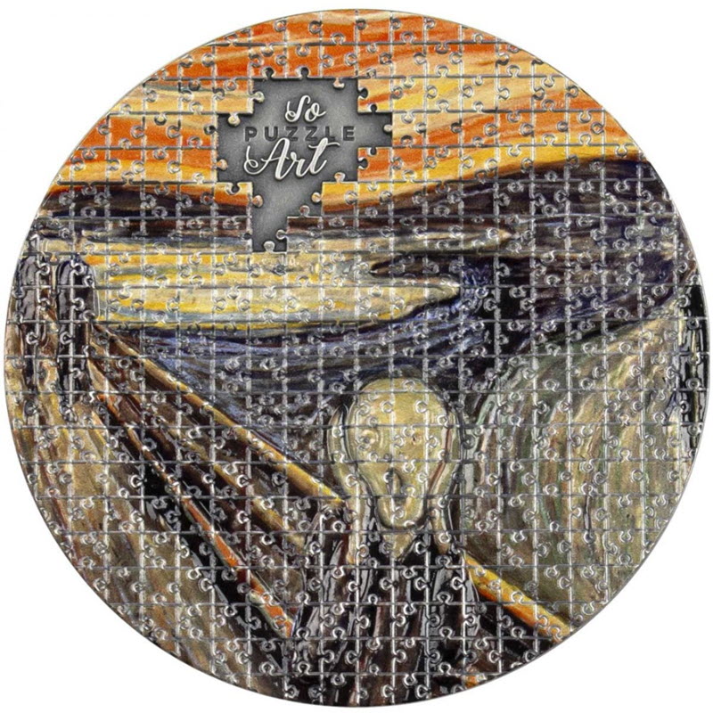 Эта необычная серебряная монета весом в 3 унции является четвертой в серии "soPuzzle"Art и посвящена одной из самых известных картин Эдварда Мунка: "Крик". тематический футляр вместе с сертификатом подлинности. Ограниченный тираж всего 340 штук по всему миру!