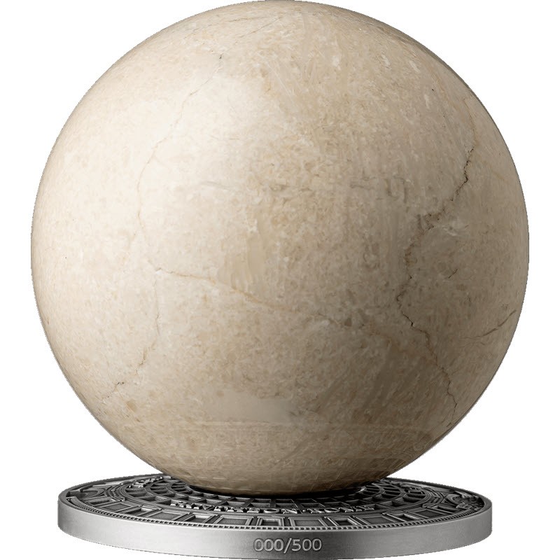 Серебряная монета весом в 5 унций от польского монетного двора MINT XXI. У монеты качество античной отделки, в набор входит мраморная сфера, тщательно воссоздающая каррарский мрамор окулуса Пантеона. Поставляется в оригинальном футляре с сертификатом подлинности. Тираж: 500 штук.