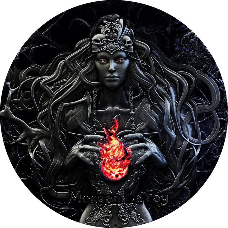 На реверсе изображена молодая Моргана с ее поразительной красотой и пронзительным взглядом. Внизу надпись: Morgan Le Fay.