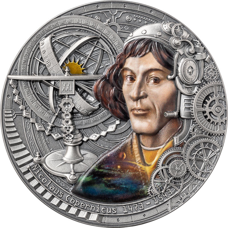 Эта замечательная серебряная монета весом 2 унции посвящена Николаю Копернику, польскому астроному и математику, сформулировавшему теорию гелиоцентризма. Монета имеет отделку "Антик" и сочетает в себе цифровую печать и цифровое золочение, подчеркивающие значимые детали дизайна. Монета поставляется в роскошном тематическом футляре вместе с сертификатом подлинности. Ограниченный тираж - всего 500 штук по всему миру.