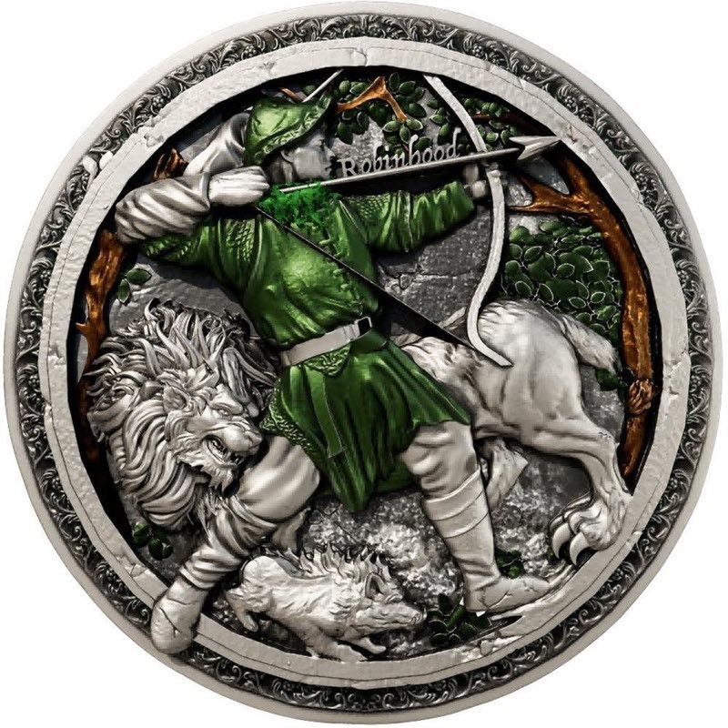 Серебряная монета Камеруна "Робин Гуд" 2025 г.в., 62.2 г чистого серебра (проба 999)