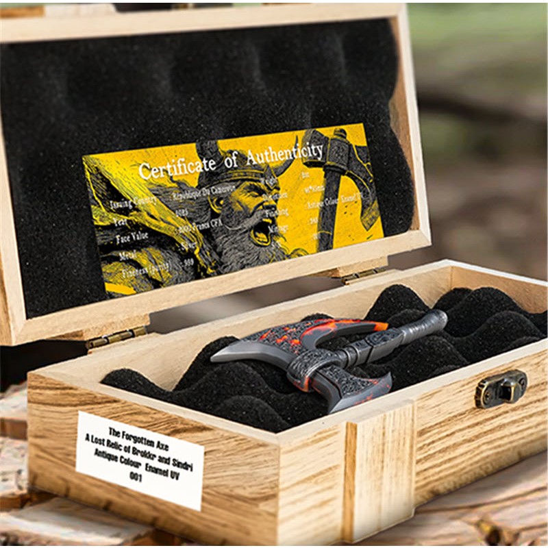 Эта прекрасная серебряная монета весом в 2 унции посвящена боевому топору. У нее размеры 46 Х 85 мм, качество античной отделки и селективное УФ-свечение. Поставляется в оригинальном футляре с сертификатом подлинности. Тираж: 349 штук.