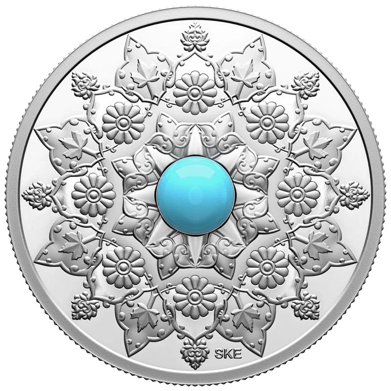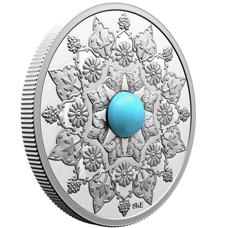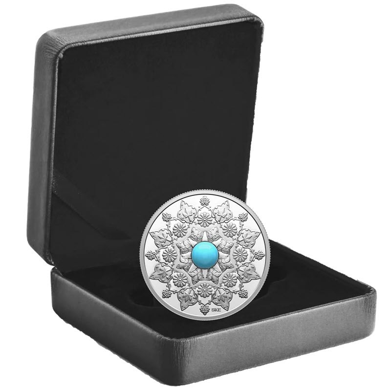 Эта прекрасная серебряная монета - пятая из серии «Празднование многообразия Канады» от Королевского канадского монетного двора – посвящена иранско-канадским культурным традициям, от Древней Персии до наших дней. У нее вставка из бирюзы.