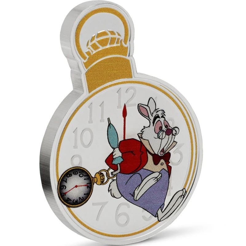 На реверсе изображен Белый кролик в часах.