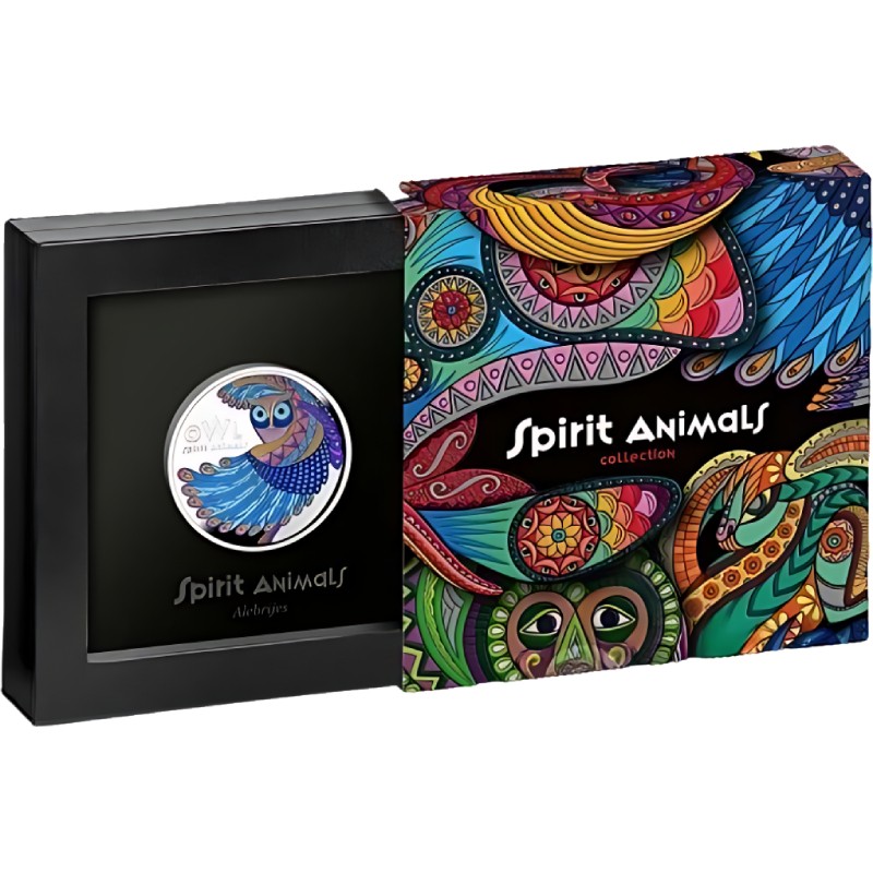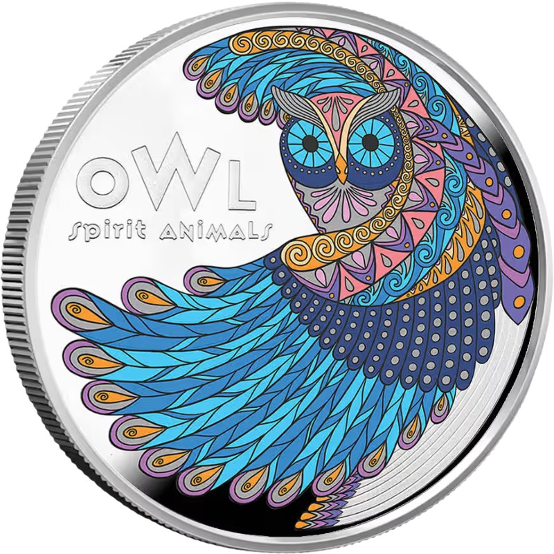 Серебряная монета Ниуэ "Духовные животные. Филин" 2024 г.в., 17.5 г чистого серебра (проба 999)