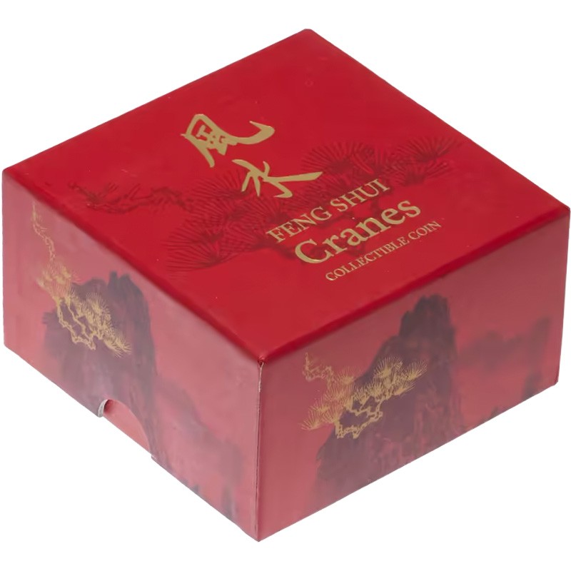 Эта чудесная серебряная 1 унцовая монета из серии «Фэн-шуй» (Feng Shui Cranes) монетного двора Новой Зеландии посвящена журавлю.