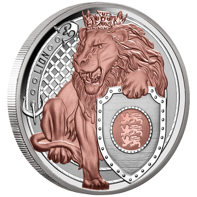 Эта чудесная монета весом в 1 унцию – вторая из серии «Геральдические звери» - посвящена льву. У нее качество пруф и выборочное розовое золочение. Поставляется в оригинальном футляре с сертификатом подлинности. Тираж: 750 штук.