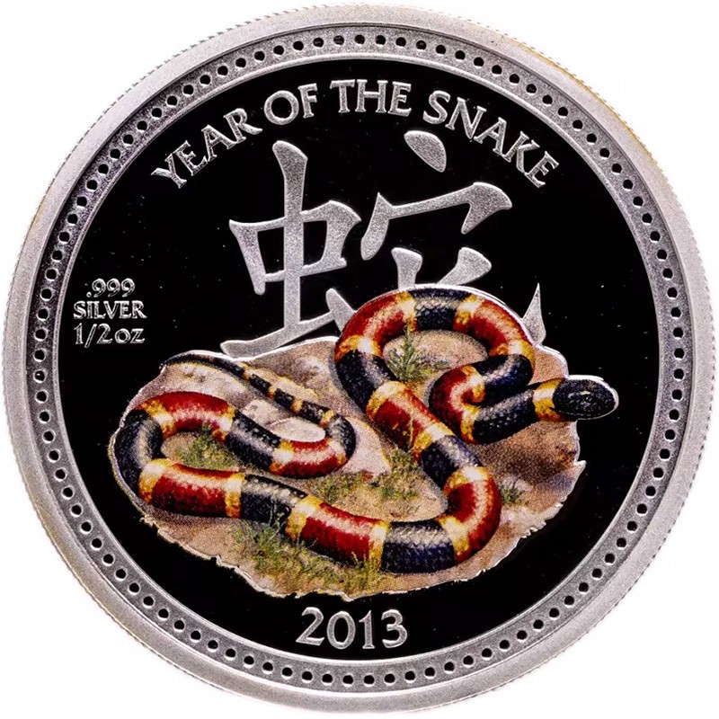 Эта чудесная серебряная монета весом в пол унции из серии Лунный календарь, посвящена символу 2013 года - Змее.