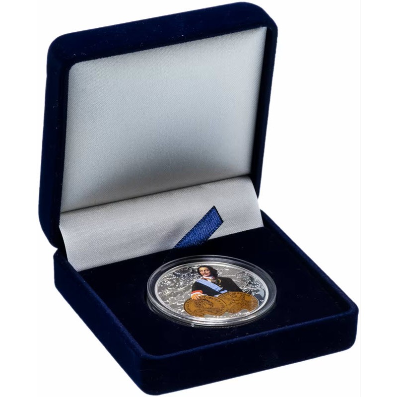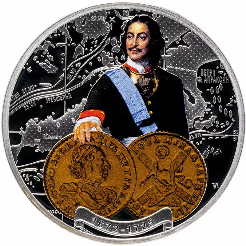Эта памятная серебряная монета Ниуэ посвящена Петру I. У нее качество пруф и селективная окраска. Поставляется в оригинальном футляре с  сертификатом подлинности. Тираж: 4000 штук.
