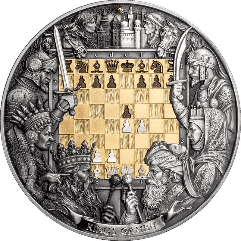 На реверсе изображено начало Королевского гамбита. Внизу надпись: KING'S GAMBIT.