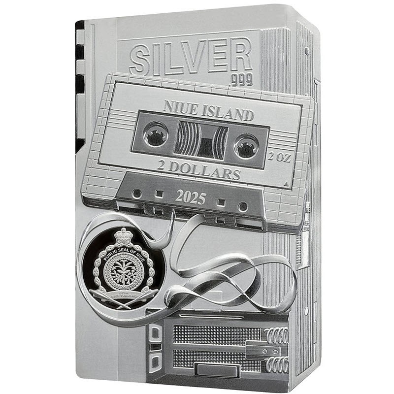 Эта удивительная серебряная монета весом в 2 унции посвящена знаменитому плееру Walkman размером 65 Х 41 мм. Она четвертая из серии «TechStalgic», которая прославляет пересечение цифровых технологий 80-90 годов и ностальгии. У нее качество пруф. Поставляется в футляре с сертификатом подлинности. Тираж: 499 штук.