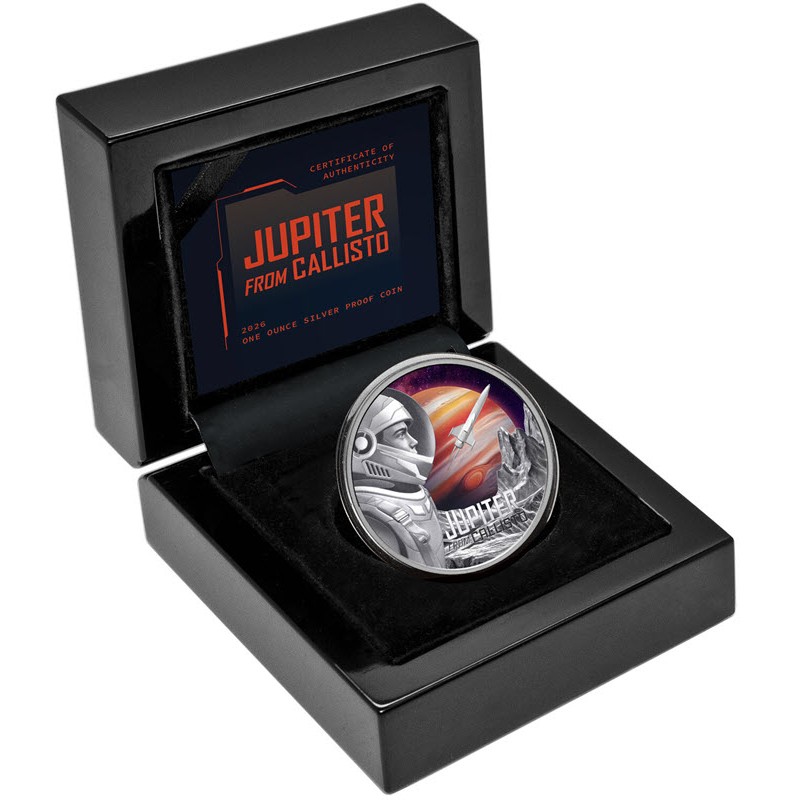 Серебряная монета Ниуэ "Юпитер с Каллисто" 2026 г.в. (пруф), 31.1 г чистого серебра (проба 999)
