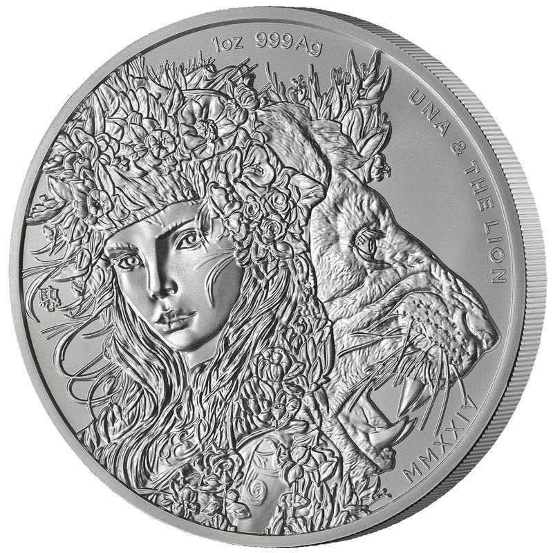 Эта серебряная монета 2024 года весом в 1 унцию работы Кэрролла Хатчингса (Carroll Hutchings) изготовлена с использованием лучших современных технологий чеканки. Пятая интерпретация и шестой выпуск из серии «Уна и Лев». У нее качество BU. Поставляется в капсуле. Тираж: 10000 штук.