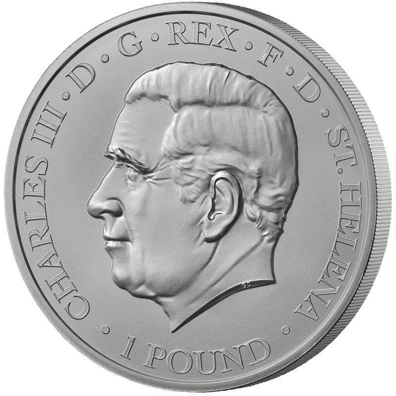 На аверсе портрет Чарльза III работы Глина Дэвиса. На срезе шеи инициалы дизайнера GD (Glyn Davies). Вокруг портрета надпись: CHARLES III · D · G · REX · F · D · ST. HELENA · 1 POUND · (на латыни означает: Чарльз III, божьей милостью, король, защитник веры, страна-эмитент, номинал).
