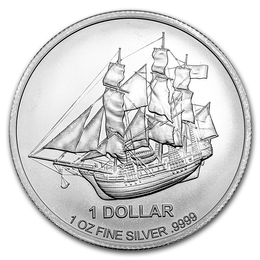 На реверсе изображен корабль «Баунти». Под ним указан номинал и валюта номинала – «1 DOLLAR» (1 доллар Островов Кука). По ободу в центре внизу полукругом находятся надписи: «1 OZ FINE SILVER .9999» (1 унция чистого серебра 0.9999 пробы).