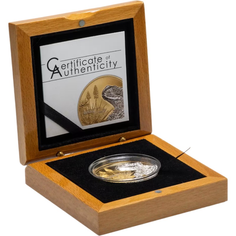 Официально этот вид получил своё название лишь в 2011 году. Латинское наименование рептилии Smaug giganteus связано с образом дракона из повести Джона Рональда Толкина «Хоббит, или Туда и обратно». Особенность вида — крупные килевидные шипы, воспроизведённые на монете благодаря инновационной технологии SmartMinting, придающей изображению исключительную реалистичность и выразительность.