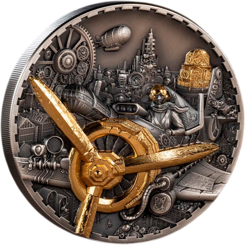 Эта серебряная монета весом в 3 унции – шестая из серии «Стимпанк» (Steampunk). У нее качество античной отделки и выборочное золочение, благодаря технологии Smartminting имеет сверх-высокий рельеф. Поставляется в оригинальном футляре с сертификатом подлинности. Тираж: 888 штук.