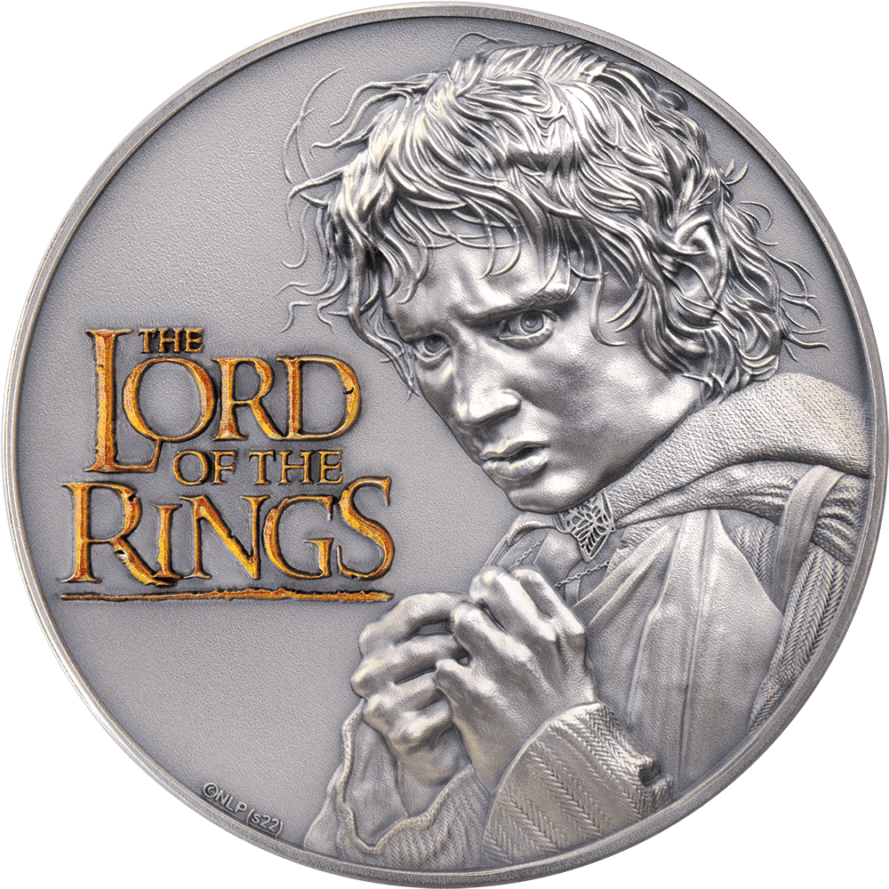 На реверсе монеты изображен прекрасный образ Фродо Бэггингса, главного героя «Властелина колец». На реверсе надпись "THE LORD OF THE RINGS" - название монеты.